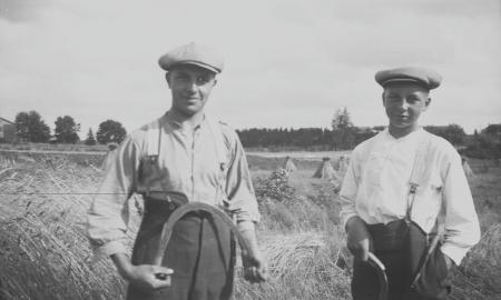 Ämnesord: skördearbete, skörd, råg, bröder |