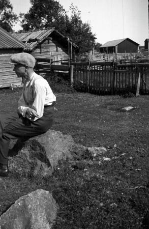 Ämnesord: män, staket, stenar (naturligt objekt), gamla byggnader |