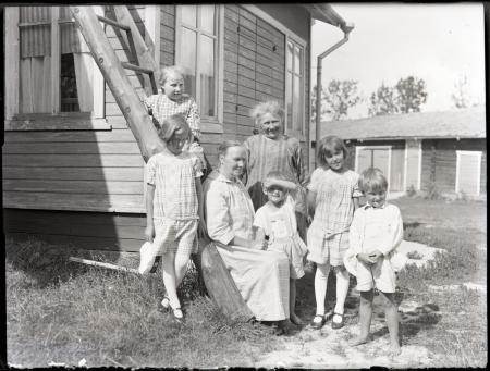 Ämnesord: barn, kvinnor, bondgårdar, sommar, stegar |