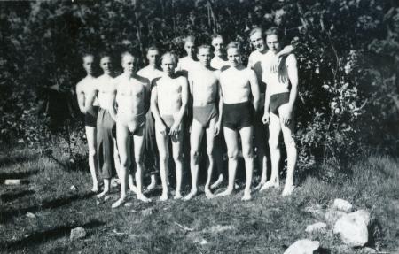 Ämnesord: ungdomsföreningar, ungdomar, män, pojkar, sommar, simning, tävlingar, vatten, stränder, festligheter, öppet vatten-simning |