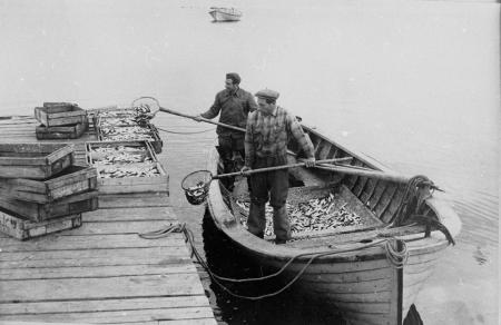 Ämnesord: fiskare, motorbåtar, strömming, bryggor |