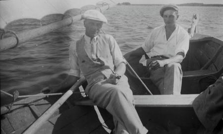 Ämnesord: segelbåtar, allmogebåtar, söndag, sommarkläder |