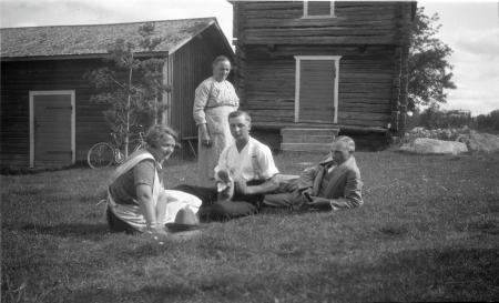 Ämnesord: lantgårdar, män, hund, kvinnor, gårdsplaner |